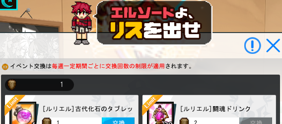 デイリーイベントでリスを倒すのを3回達成することでイベント報酬や交換用アイテムを集められる。